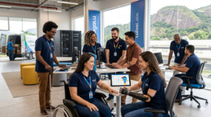 - Acessibilidade e Adaptação: A empresa realiza auditorias constantes em suas unidades para garantir que rampas, elevadores, softwares e postos de trabalho estejam em conformidade com as necessidades específicas de cada colaborador.