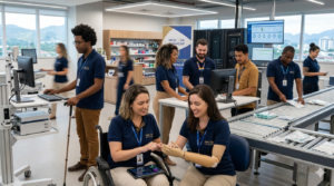 - Segurança em Primeiro Lugar: No ambiente industrial e logístico, a segurança é adaptada. Colaboradores com deficiência auditiva, por exemplo, contam com sinais luminosos e dispositivos vibratórios para alertas de segurança nas operações.